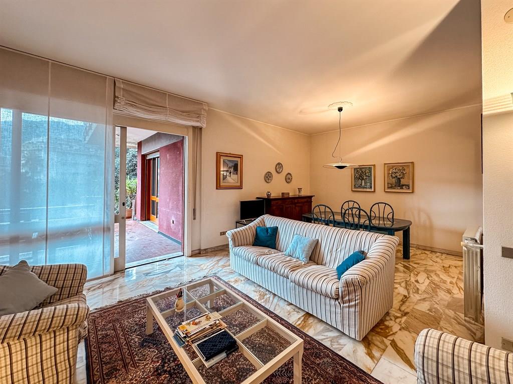 Rapallo, nella zona a levante della città, ampio quadrilocale di circa 135 mq attualmente suddivisi in ingresso, ampio soggiorno, cucina abitabile, 3 camere, 2 bagni. Terrazzi vivibili e balconata.